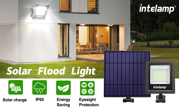 intelamp All-Night Solar Flood Light with 1000LM & 16ft Cord